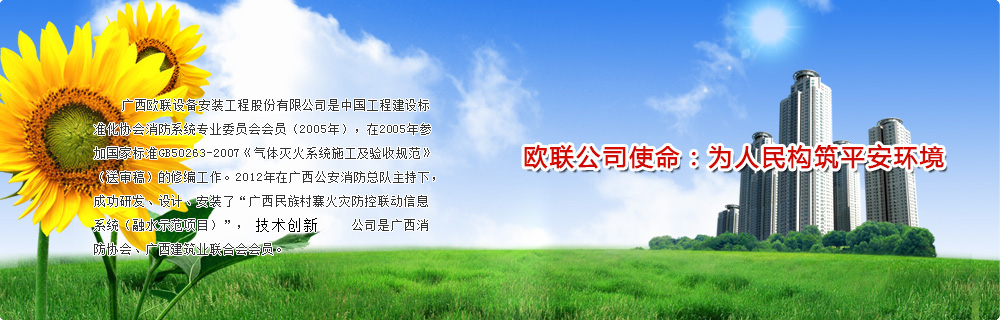 廣西歐聯(lián)設備安裝工程股份有限公司,成立于2002年12月,創(chuàng )立至今,公司始終專(zhuān)注于設備安裝、消防行業(yè)和設施設備的研發(fā)、設計、承包施工、消防檢測、維護保養、建筑(物業(yè))設施設備安全運營(yíng)服務(wù)物聯(lián)中心。公司總部位于南寧市國家高新開(kāi)發(fā)區東盟企業(yè)總部港,在總部港擁有自有產(chǎn)權的綜合辦公樓一幢,并在南寧市東方明珠花園12樓設立銷(xiāo)售總部。